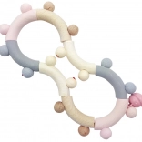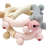 Gładkie drewniane elementy i koraliki zachęcają malucha do chwytania, ściskania i turlania, rozwijając koordynację ręka–oko oraz dotyk.
