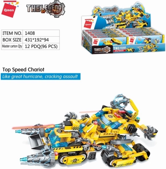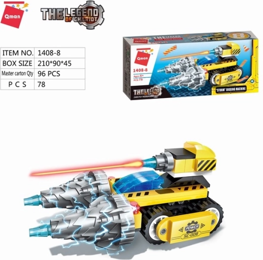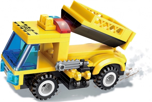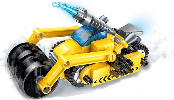 - 8 mini zestawów: Ciężarówka Spanker, Dźwig Hercules, Walec Thunder, Koparka Talon, Śmigłowiec Dragon, Spychacz Blade, Robot Ninja, Maszyna wiertnicza Storm