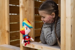 Uzupełniona o tęczowe akcesoria i przyjazny uśmiech, daje dzieciom poczucie radości i bezpieczeństwa.
