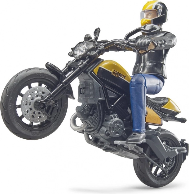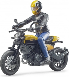 Ten szczegółowo wykonany model motocykla Scrambler DUCATI Cafe Racer od BRUDER jest idealny dla małych motocyklistów i kolekcjonerów. Realistyczne opracowanie, od widocznych elementów silnika po kształt siedzenia, uzupełnia w pełni ruchoma figurka jeźdźca, która pozwala na naturalne pozycje jazdy i dynamiczne ustawienia.