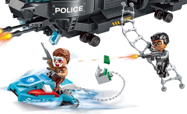 Wejdź do świata akcyjnych misji z oddziałem policji, który nie daje przestępcom szans. Helikopter z działającymi wirnikami i opuszczaną linową drabinką umożliwia błyskawiczny desant w sam środek akcji, podczas gdy ścigany ucieka na przebudowywalnej maszynie – z motocykla na skuter wodny w mgnieniu oka.
