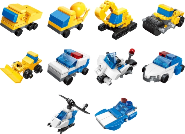 Ten zestaw zawiera 10 różnych modeli, w tym furgonetkę, koparkę, śmigłowiec patrolowy i inne, co gwarantuje niekończące się możliwości rozwoju wyobraźni Twoich dzieci.