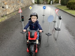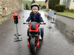 Dzieci w prosty i przyjemny sposób poznają podstawowe znaki drogowe oraz bezpieczne zachowanie w ruchu podczas zabaw na miasteczku drogowym.