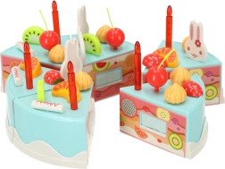 Rozświetl dziecięce przyjęcie tym niebieskim tortem urodzinowym do krojenia – zestaw 75 elementów pełen owoców, świeczek i dodatków do zabawy w cukiernika. Dzięki zapięciom na rzep dzieci łatwo pokroją tort i złożą go ponownie, ozdabiając według wyobraźni i ćwicząc małą motorykę oraz umiejętności społeczne. Wykonany z bezpiecznego plastiku ABS, odpowiedni od 3 lat.