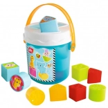 Wiaderko zawiera 11 kolorowych klocków, które dzieci mogą wkładać do środka zgodnie z kształtami na pokrywce, co pomaga rozwijać logiczne myślenie oraz koordynację ręka-oko. Dzięki kompaktowemu designowi (wielkość wiaderka 15 cm) jest łatwe do przenoszenia, więc może bawić dzieci wszędzie tam, gdzie się z nim wybiorą.