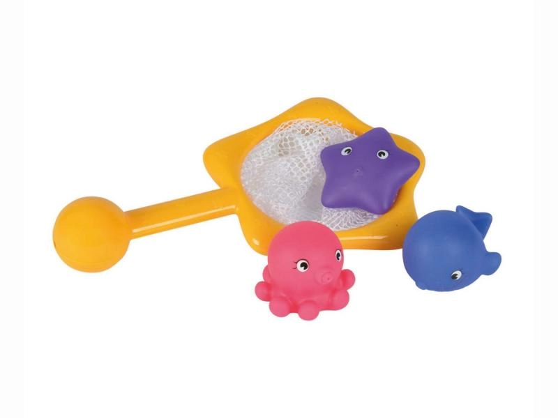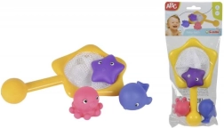 Ten uroczy zestaw do wanny dostarcza dzieciom radości z wodnych zabaw. Kolorowe psikające zwierzątka dobrze leżą w rączce i zachęcają do poznawania wody, a siatka do łowienia wspiera koordynację oko–ręka i pierwsze próby chwytania.