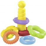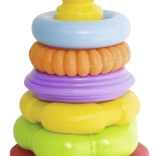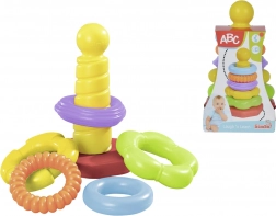 Piramida z kolorowymi pierścieniami to idealne narzędzie do rozwoju motoryki i umiejętności kombinacyjnych u dzieci. Zawiera pięć różnokolorowych pierścieni o różnych kształtach.