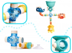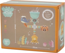 Kolorowy wodny tor z motywami morskich zwierzątek zamieni każdą kąpiel w odkrywanie. Wlej wodę do górnego lejka, a strumień uruchomi połączone rurki, rozkręci kółeczka i poruszy figurki – zabawa, która utrzyma uwagę dzieci i umili codzienną kąpiel.