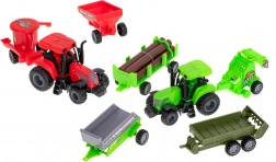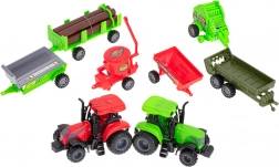 W zestawie znajdują się 2 traktory i różne nadstawki – przyczepa na bele, siewnik/kosiarka oraz prasa do bel. Idealne do symulacji prawdziwych prac rolniczych.