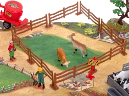 Krowa, byk, owca, koza i inne akcesoria, do tego figurki farmerów oraz elementy ogrodzenia do tworzenia wybiegów. Kompletny zestaw do realistycznej zabawy.