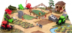- Składana stajnia, 2 traktory, 3 przyczepy/nadstawki (np. kosiarka, prasa do bel, przyczepa na bele), silos, drzewo, 8 drewnianych elementów ogrodzenia, 8 łączników (podstaw) do ogrodzenia, 6 ceglastych elementów, koryto/poidło, figurki farmerów, zwierzęta, znaki ostrzegawcze i inne akcesoria