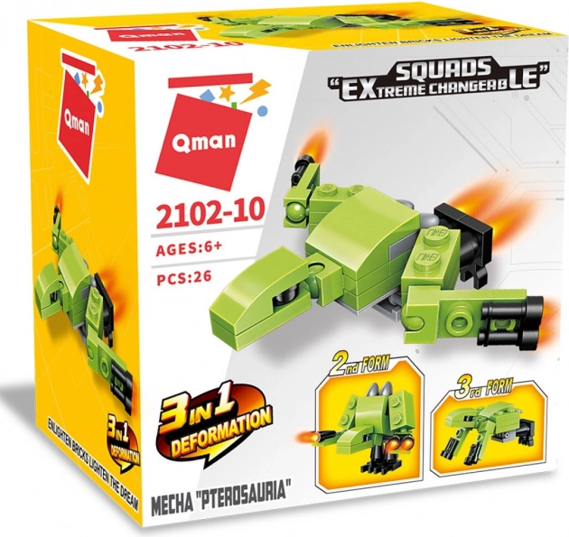Zestaw Qman Mecha Pterosauria 3w1 jest idealny dla małych entuzjastów klocków i modelarstwa. Dzieci mogą wybierać spośród trzech budowalnych modeli lub stworzyć własne unikalne konstrukcje. Ta zabawka wykonana jest z wysokiej jakości i trwałego tworzywa ABS, co gwarantuje jej długą żywotność.