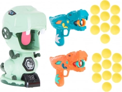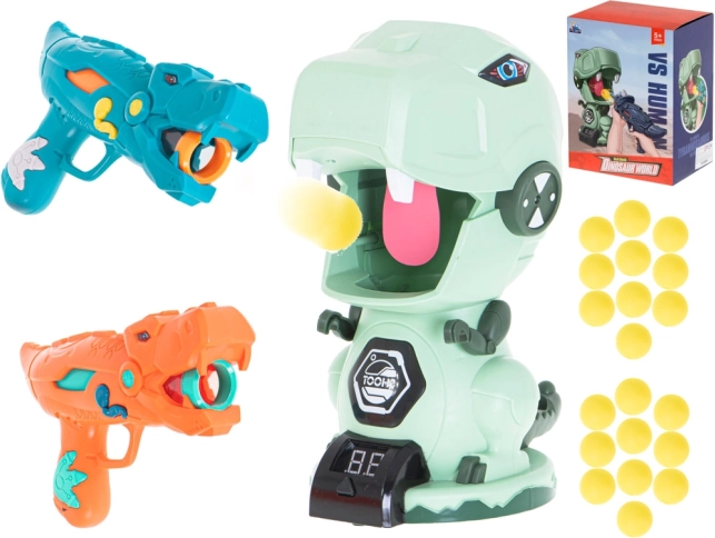 Dwa stylowe pistolety w kształcie dinozaurów umożliwiają bezpieczne i efektywne strzelanie miękkimi piankowymi kulkami. Idealne do gier w parach i zawodów.