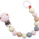 Ciesz się bezpiecznym mocowaniem smoczka z tym ręcznie robionym drewnianym łańcuszkiem, który jest idealny dla małych dzieci. Łańcuszek jest wyposażony w silikonowe kółko, pozwalające na przymocowanie praktycznie każdego smoczka. Wszystkie materiały są starannie dobrane, by były bezpieczne dla dzieci, co oznacza, że są odporne na wilgoć i nie zawierają szkodliwych substancji.
