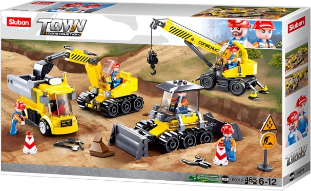 Sluban Plac budowy zawiera wszystkie niezbędne elementy do stworzenia pełnowartościowego terenu budowy z 465 elementami.