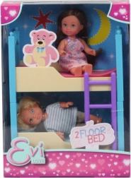 Stwórz przytulny pokoik dla swoich lalek z czarującym zestawem Evi Love. Dwie małe laleczki mogą spać na łóżku piętrowym z praktyczną drabinką, dzięki czemu wieczorne kładzenie do łóżeczka jest równie zabawne jak dzienna zabawa.
