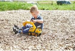 Solidna konstrukcja i cztery koła sprawdzą się podczas zabawy na piasku, w ogrodzie i na placu zabaw. Idealna zabawka dla aktywnych dzieci.