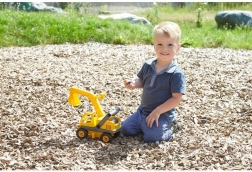 Solidna dziecięca koparka LENA ECO o długości 35 cm jest wykonana z recyklingowanego plastiku z domieszką drewna i oferuje funkcjonalny mechanizm ze sterowaniem łyżką oraz uchylną kabiną. Idealna do zabawy w domu i na zewnątrz, od 2 lat.