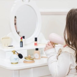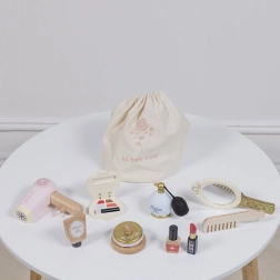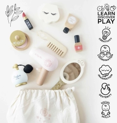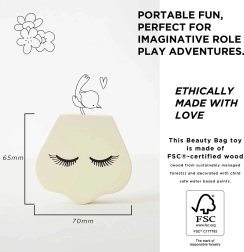 Zostań gwiazdą własnego show z tą stylową kosmetyczną torebką dla dzieci! Zawiera wszystko, co potrzebne do zabawy w wizażystę – od kremu po suszarkę. Wykonana z naturalnej bawełny i wysokiej jakości drewna z certyfikatem FSC®, ręcznie domalowana ekologicznymi farbami. Wspiera wyobraźnię, małą motorykę i zabawę w odgrywanie ról.