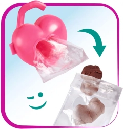 W zestawie znajdują się smycz, masa plastyczna, foremka oraz pudełeczko w kształcie serca z woreczkami – wszystko, czego potrzebuje mały opiekun.