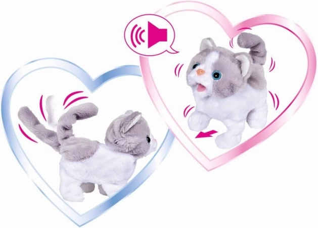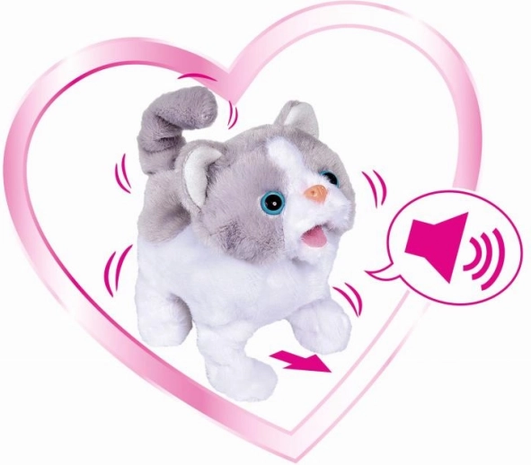 Ta szaro-biała pluszowa kotka CHICHI LOVE jest wyjątkowo miękka w dotyku, a jednocześnie pełna niespodzianek. Dzięki interaktywnym funkcjom dostarcza dzieciom jeszcze więcej radości – potrafi się poruszać, machać ogonkiem i wydaje realistyczne dźwięki, które ożywiają zabawę.