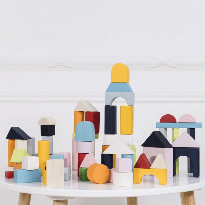 Odkryj ponadczasowy zestaw dla najmłodszych: 60 wysokiej jakości drewnianych klocków w praktycznej bawełnianej torbie. Kolorowe kształty z trwałego drewna kauczukowego z nietoksyjnymi farbami na bazie wody wspierają kreatywność, małą motorykę i wyobraźnię przestrzenną. Klocki mają zaokrąglone krawędzie, są bez plastiku i świetnie sprawdzą się w domu oraz w podróży.