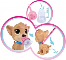 Szukasz zabawki dla małych opiekunów? Interaktywna chihuahua Pii Pii Puppy uczy dzieci troski o pupila, a jednocześnie jest świetnym towarzyszem zabawy. Napój, przespaceruj się i – ups – mała kałuża! Realistyczna funkcja siusiania bawi i wspiera wyobraźnię oraz zabawy fabularne.