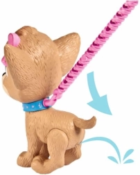 Mechaniczne sterowanie bez baterii – wystarczy nacisnąć smycz, a chihuahua usiądzie. Idealne do zabaw w odgrywanie ról: spacery i opieka.