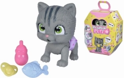 Kociątko PAMPER PETZ jest idealnym zwierzątkiem dla dzieci, które cieszą się magią adopcji i opieki nad małą zabawką. Zabawka zawiera możliwość picia prawdziwej wody z butelki, a następnie sika do pieluszki, która zmienia kolor, gdy jest mokra. Magiczna łapka zdradza, czy kociątko jest chłopcem, czy dziewczynką.