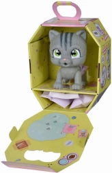 Zestaw zawiera: kociątko o wysokości 15 cm z pieluszką, funkcję sikania, 3 niespodzianki i certyfikat adopcyjny. Wszystko jest zapakowane w eleganckie papierowe pudełko, które może służyć jako przenośny domek. Prezenty są zapakowane w specjalne woreczki.