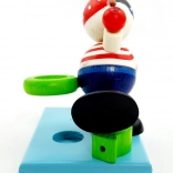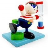 Motywuj dzieci do regularnego mycia zębów poprzez zabawę. Drewniany pirat z klepsydrą z niebieskim piaskiem niezawodnie odmierza zalecane 2 minuty, a zintegrowany uchwyt na szczoteczkę do zębów pomaga utrzymać porządek w łazience.