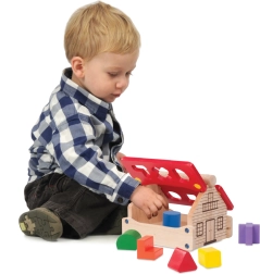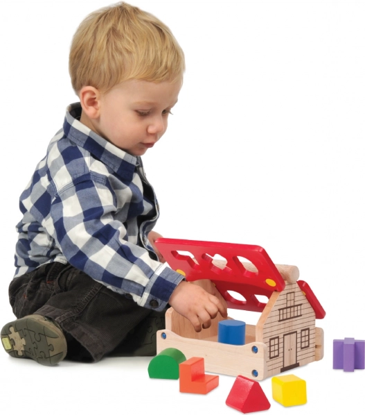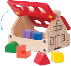 Ta drewniana układanka w kształcie domku to coś więcej niż tylko zabawka. Dzieci cieszą się nie tylko zabawą, ale też nauką. Domek z otwieranymi elementami dachu służy jako przestrzeń do przechowywania drobnych przedmiotów, co czyni go nie tylko funkcjonalnym, ale i praktycznym. Układanka jest wykonana z trwałego masywnego drewna, które łączy naturalny wygląd z atrakcyjnymi kolorami.