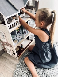 Miejska willa jest zaprojektowana tak, aby estetycznie pasowała do każdego dziecięcego czy salonu, i jest odpowiednia dla lalek do 12 cm wysokości. Domek był nominowany do nagrody Top 10 Zabawek 2021, co świadczy o jego popularności i jakości.