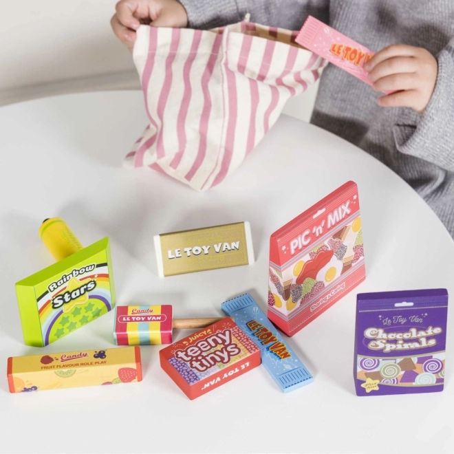 Le Toy Van przedstawia kolorowy zestaw słodyczy przeznaczony do zabawy, który wspiera wyobraźnię i kreatywne myślenie u dzieci. Ta zabawka jest idealna dla małych odkrywców od 2 lat, którzy chcą zanurzyć się w świat zabaw w udawanie.