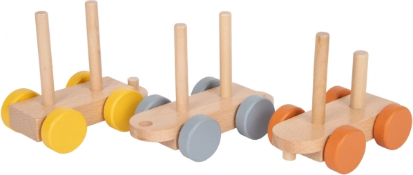 Składana konstrukcja pociągu pozwala dzieciom rozwijać drobną motorykę i koordynację ruchową, gdy uczą się nawlekać i składać poszczególne bloki.