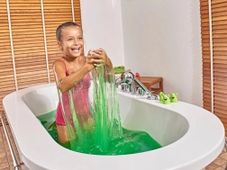 Zamień zwykłą wodę w zielony śluz i ciesz się niezapomnianą zabawą w wannie.