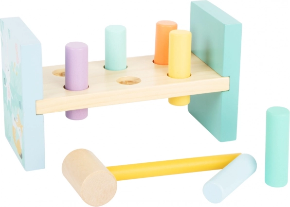 Odkryj urok tradycyjnej zabawki w nowoczesnym wydaniu. Nasza zabawka młotkowa w delikatnych pastelowych kolorach jest idealna dla dzieci, które chcą sprawdzić swoją siłę i jednocześnie poprawić swoje umiejętności motoryczne. Ilustracje zwierzątek nadają tej zabawce unikalny wygląd. Po zabawie wbijaniem wszystkich kołków można łatwo obrócić zabawkę i zacząć od nowa.