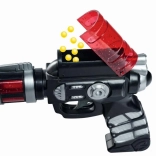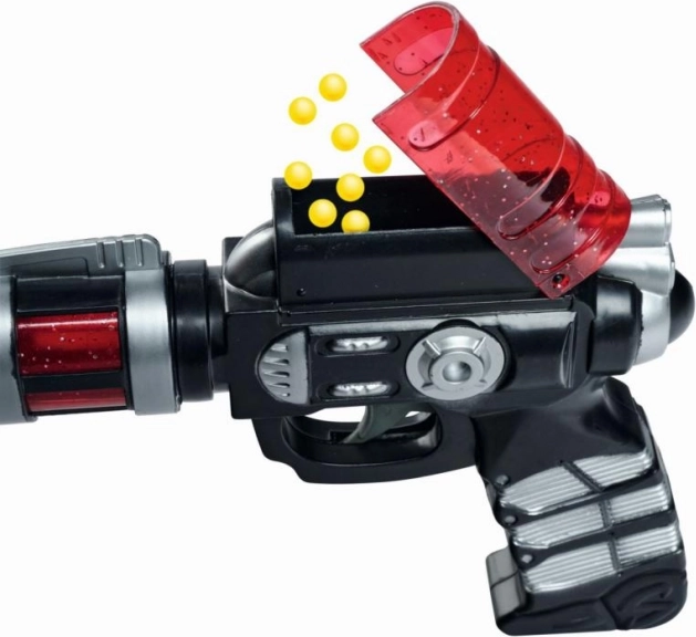 Ten kosmiczny pistolet na kulki dostarcza mnóstwo zabawy w domu i na zewnątrz. Dzięki lekkim żółtym kulkom i niskiej sile wystrzału jego używanie jest bezpieczne i odpowiednie dla dzieci. Ładowanie od góry jest proste i szybkie, więc akcja nigdy się nie kończy.