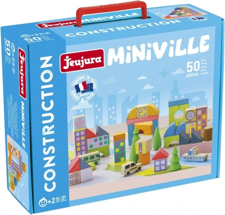 Odkryj kreatywną drewnianą układankę, która rozwija wyobraźnię i małą motorykę dzieci już od 2 lat. Zestaw zawiera 50 barwnie dekorowanych klocków, proste drewniane pojazdy oraz matę do zabawy do budowy własnego miasteczka. Wyprodukowano we Francji z litego drewna bukowego i sosnowego, wykończonego wyłącznie farbami i lakierami na bazie wody. Zapakowane w praktyczną tekturową walizeczkę zadrukowaną tuszami roślinnymi. Bezpieczne materiały, wysoka jakość wykonania i zabawa na długie godziny.