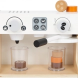 Dzięki profesjonalnemu wzornictwu ten ekspres umożliwia dzieciom przygotowanie różnych rodzajów kawy i poczucie się jak prawdziwi bariści. Zawiera obrotowe pokrętła z klikającymi dźwiękami, które zwiększają realizm zabawy. Z tyłu znajduje się także tabliczka do zapisywania dziennego menu kredą, co pobudza kreatywność.