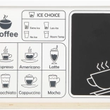 Tabliczka z tyłu na kredę pozwala wymyślać i zapisywać dzienne menu, wspierając rozwój kreatywności.