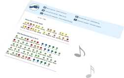W zestawie znajdują się zapisy nutowe z kolorowymi oznaczeniami i ulubionymi dziecięcymi piosenkami, aby szybko zacząć grać.