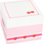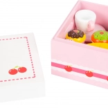 Rozpieszczaj małych kucharzy stylowym zestawem pełnym pyszności. Ten drewniany box z wieczkiem skrywa tort, muffiny, owoce oraz naczynia do serwowania. Dzięki rzepom tort można łatwo „kroić”, co wspiera motorykę małą, zabawy w odgrywanie ról oraz rozwój umiejętności społecznych. Praktyczne pudełko z wieczkiem i uchwytami ułatwia przechowywanie i przenoszenie.