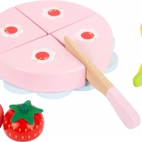 Dzieci mogą dzielić tort na porcje i ponownie łączyć dzięki rzepom – idealne do ćwiczenia precyzji ruchów i realistycznej zabawy w cukiernię.