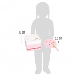 Pudełko ma wieczko z uroczą ilustracją i boczne otwory dla łatwego chwytu. Zabawa w krojenie i serwowanie wspiera koordynację ręka–oko, motorykę małą oraz komunikację między dziećmi. Idealny dodatek do każdej dziecięcej kuchni.
