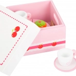 Ten wysokiej jakości drewniany zestaw Small Foot zapewnia dzieciom mnóstwo kreatywnej zabawy w dziecięcej kuchni i podczas zabawy w kawiarnię. W środku pudełka znajdziesz tort z kawałkami na rzep, muffiny, banana, truskawkę oraz zestaw naczyń – filiżanki, talerzyki i sztućce – do perfekcyjnego serwowania.