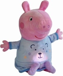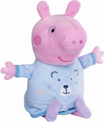 Uroczy usypiacz Peppa Pig w niebieskiej piżamce pomaga dzieciom spokojnie zasnąć dzięki kołysance i przyjemnemu nocnemu światełku. Muzyka gra do 15 minut, a światło świeci 30 minut, po czym wszystko wyłącza się automatycznie. Mięciutkie pluszowe wykonanie i idealna wysokość 25 cm do przytulania przed snem.