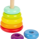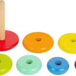 Ta wieża do układania pozwala dzieciom rozpoznawać i sortować kolorowe krążki według ich rozmiaru i koloru. Dzięki zaokrąglonej podstawie wieża może się kołysać, co zapewnia jeszcze więcej radości i zabawy. Solidna drewniana konstrukcja jest idealna do długotrwałej zabawy, także dla najmłodszych.