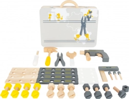 Walizka z narzędziami Miniwob jest przeznaczona dla wszystkich młodych entuzjastów budownictwa i rzemiosła. Drewniana walizka skrywa narzędzia, które są starannie zabezpieczone gumowymi paskami, więc żadne narzędzie się nie zgubi i jest zawsze gotowe do użycia.