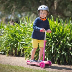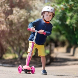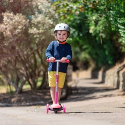 Hulajnoga z trzema kołami zapewnia stabilność i bezpieczeństwo, ułatwiając dzieciom sterowanie.